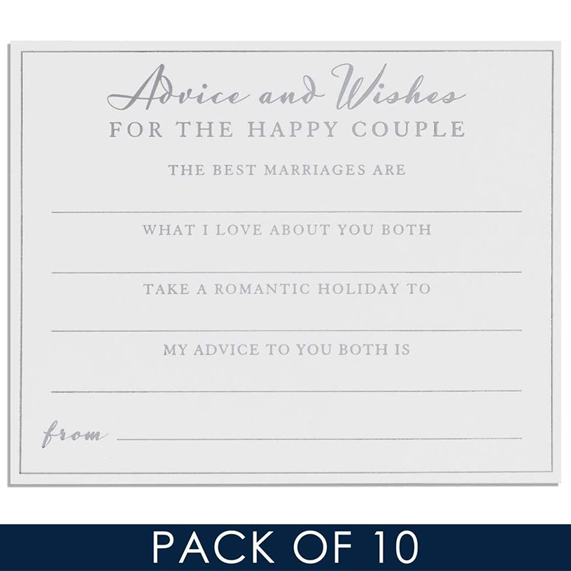 Amore Pack of 10 Wedding Advice Cards for the Bride & Groom. Cards with space for guests to write their advice for the newly married couple. Great alternative to a guestbook. Pack of 10 White Cards with Silver Text